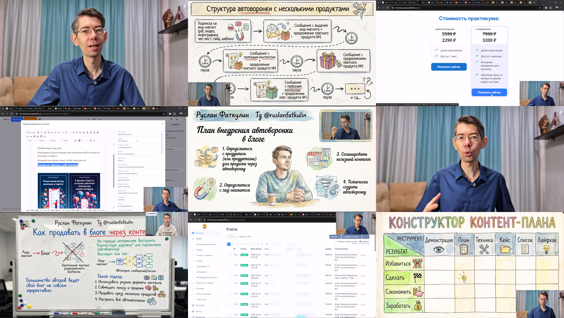 Вы увидите живую автоворонку изнутри — со структурой, письмами, продуктами и цифрами.