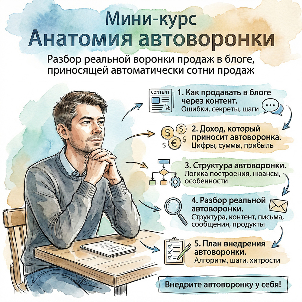 Я записал мини-курс с видеоразбором своей реально действующей Автоворонки продаж в моём блоге.