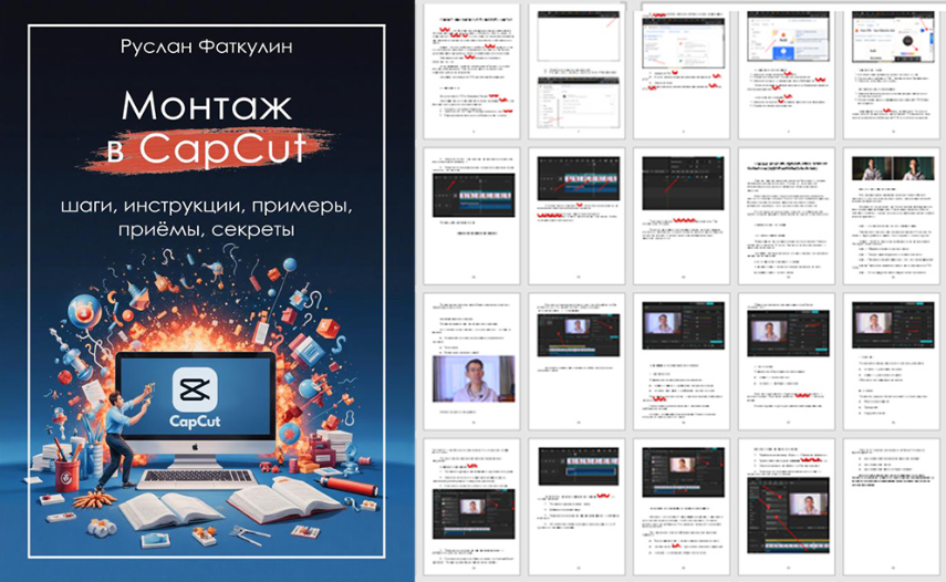 63-страничная электронная книга "Монтаж в CapCut" Детальные и наглядные иллюстрированные инструкции по монтажу в одной из самых лучших удобных и бесплатных программ
