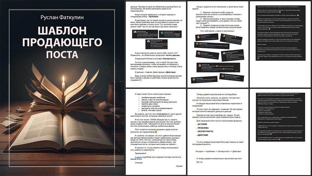 Дополнительно вы получите pdf-файлик с готовым шаблоном продающего письма/поста. Внутри - разбор одного из моих продающих писем, сработавшего очень хорошо. Вы можете взять структуру этого письма и адаптировать под свой продукт или услугу